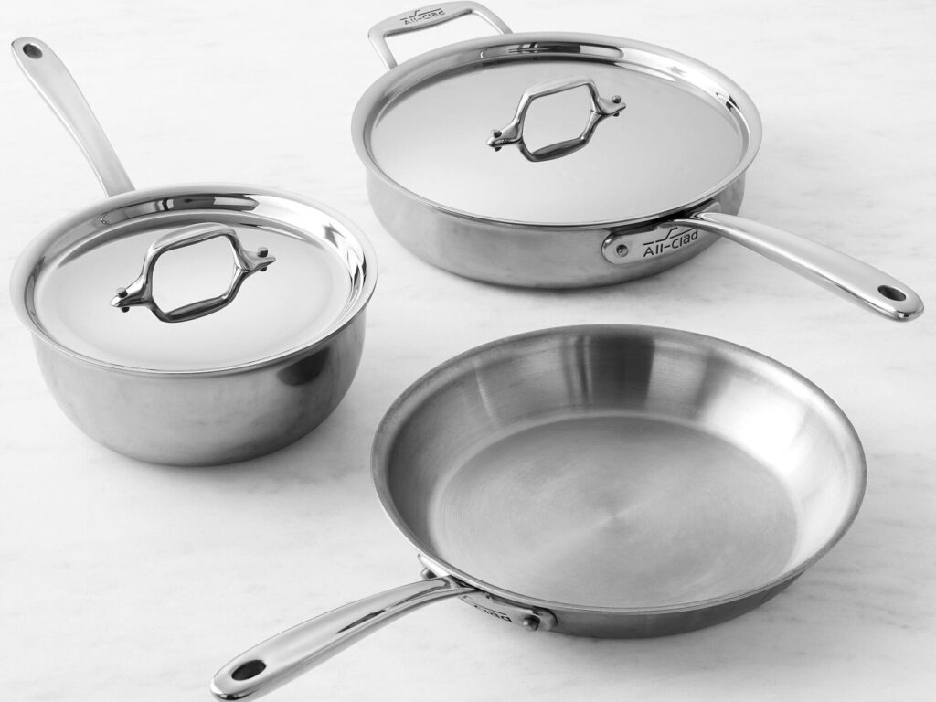 Stainless steel cookware is known for its durability and resistance to rust and staining. It offers excellent heat retention and distribution, ensuring that our dishes are cooked evenly. When looking at “All Clad pans near me,” we should consider features like: