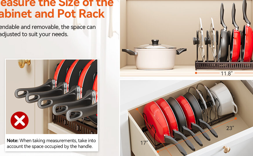 When selecting the ideal size for your pots and pans organizer cabinet, it’s essential to consider both your kitchen space and your cooking habits. A well-sized organizer not only enhances accessibility but also optimizes storage efficiency. We recommend evaluating the dimensions of your cabinets and the cookware you own before making a purchase.